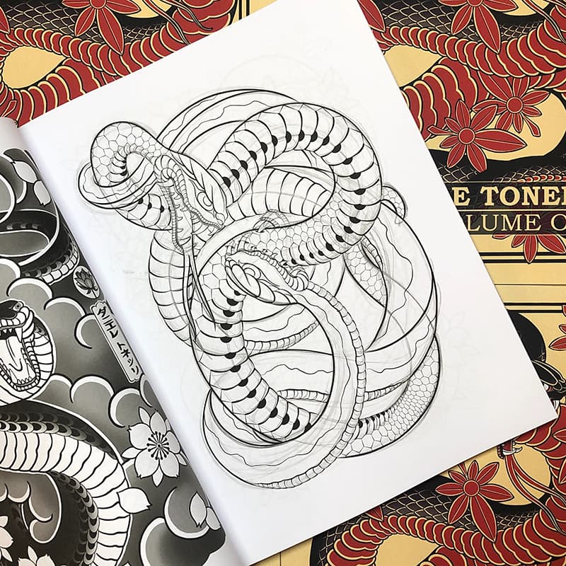 Ein fantastisches Buch von Daniele mit über 100 inspirierenden Seiten voller Ideen für japanische Tattoo-Motive: Daruma, Schlangen, Geishas, Masken, Drachen, Rückenmotive, Brustpaneele und vieles mehr!