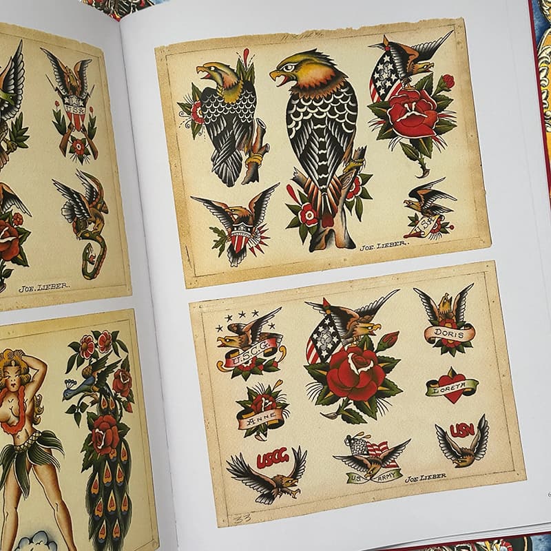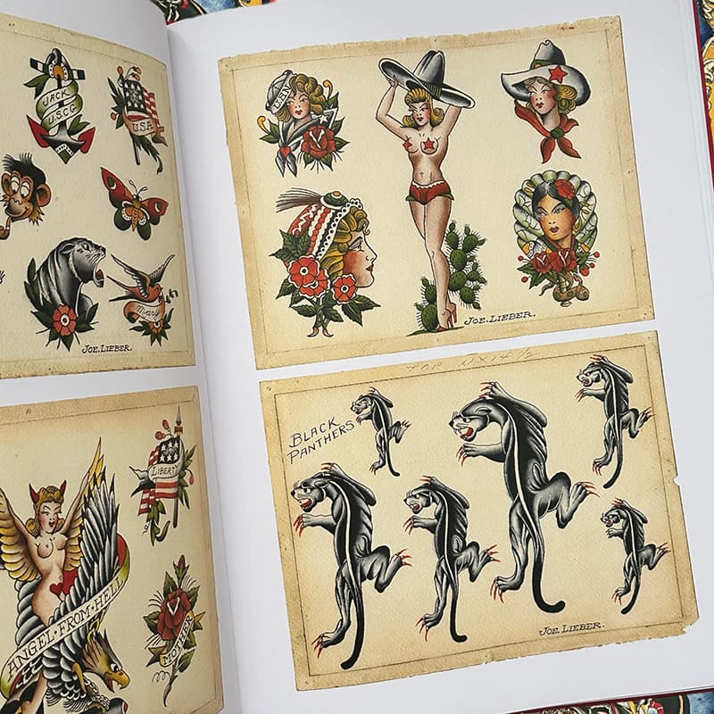 Brooklyn Joe Lieber (1888-1953) was a mentor for Sailor Jerry Collins. Though born in Brooklyn, Lieber moved to the S.F. Bay area and spent most of his career there. Sharing a powerful near-identical drawing and painting style, he and Collins originated and traded hundreds of designs. This book features Lieber’s brilliant and influential flash and drawings, equal in scope to those of Sailor Jerry. Published by Hardy Marks.