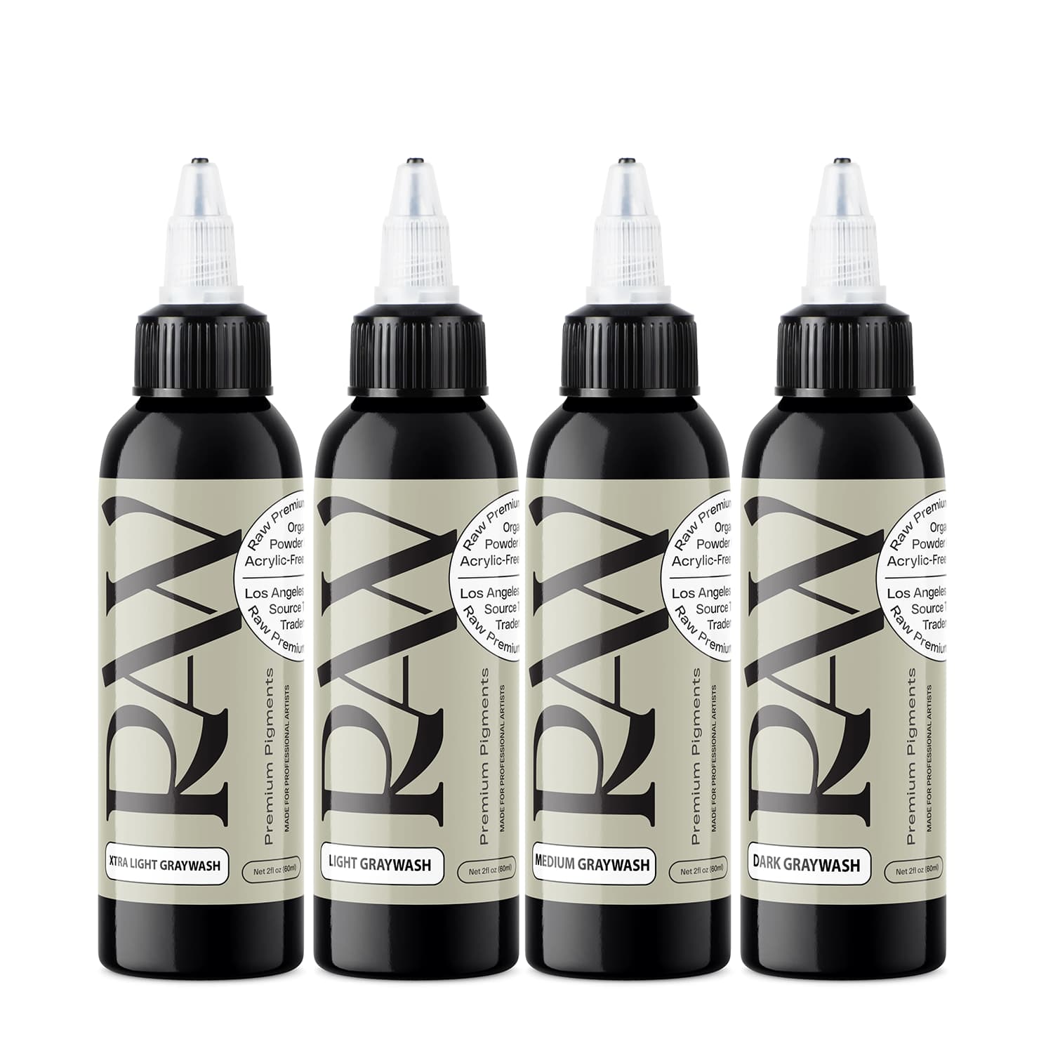 Designed for serious tattoo artists, the Raw Tattoo Premium Ink Gray Wash Set delivers unmatched consistency, reliability, and quality in every drop. This 4-bottle set includes Extra Light, Light, Medium, and Dark graywash tones—pre-dispersed and ready to work as hard as you do.